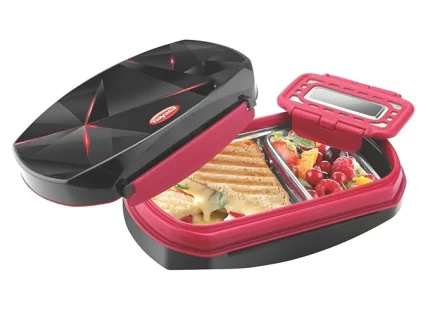 Nayasa Razor Insulated Lunch Box has high quality inner stainless steel which keeps food warm and fresh for many hours. The Tiffin is made of food grade material and stainless steel inner. Keeping in mind space issues, this tiffin has a Sleek design which can easily fits in your lunch bag. The four side klip lock ensures leaking is a thing of a past. With a separate stainless steel leak proof container for dry & wet food, the Razor lunch box is perfect for you.