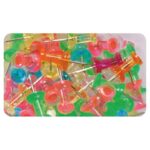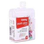 Oddy Push Pins Damroo Shape-TransparentFeatures:ABS plastic materialsDamroo shape for superior gripCorrosion-resistant steel needle pointsAttractive see through dibbi packing50 pieces per retail packAvailable in opaque & transparent colorsBenefits:Easy to use & removeNo damage to notice boardAttractive colors Re-UsableFor use on cork boards, bulletin boards, map marking, paper fixing etc.For home, office, school & Institutional useOddy Push Pin assorted colors is ideal to hang picture, artwork or memos. Pin with plastic head is easy to use & designed for maps, bulletin boar